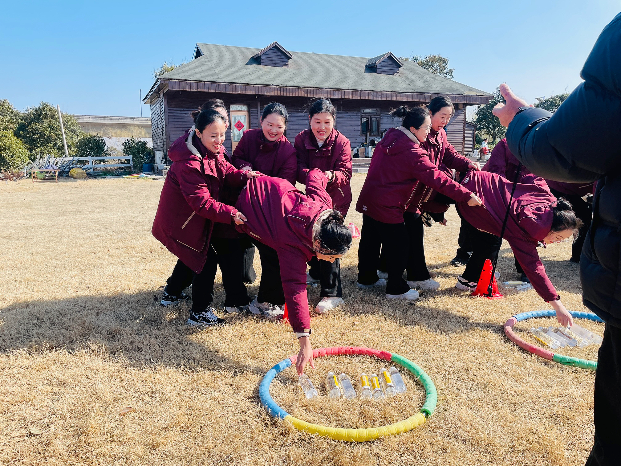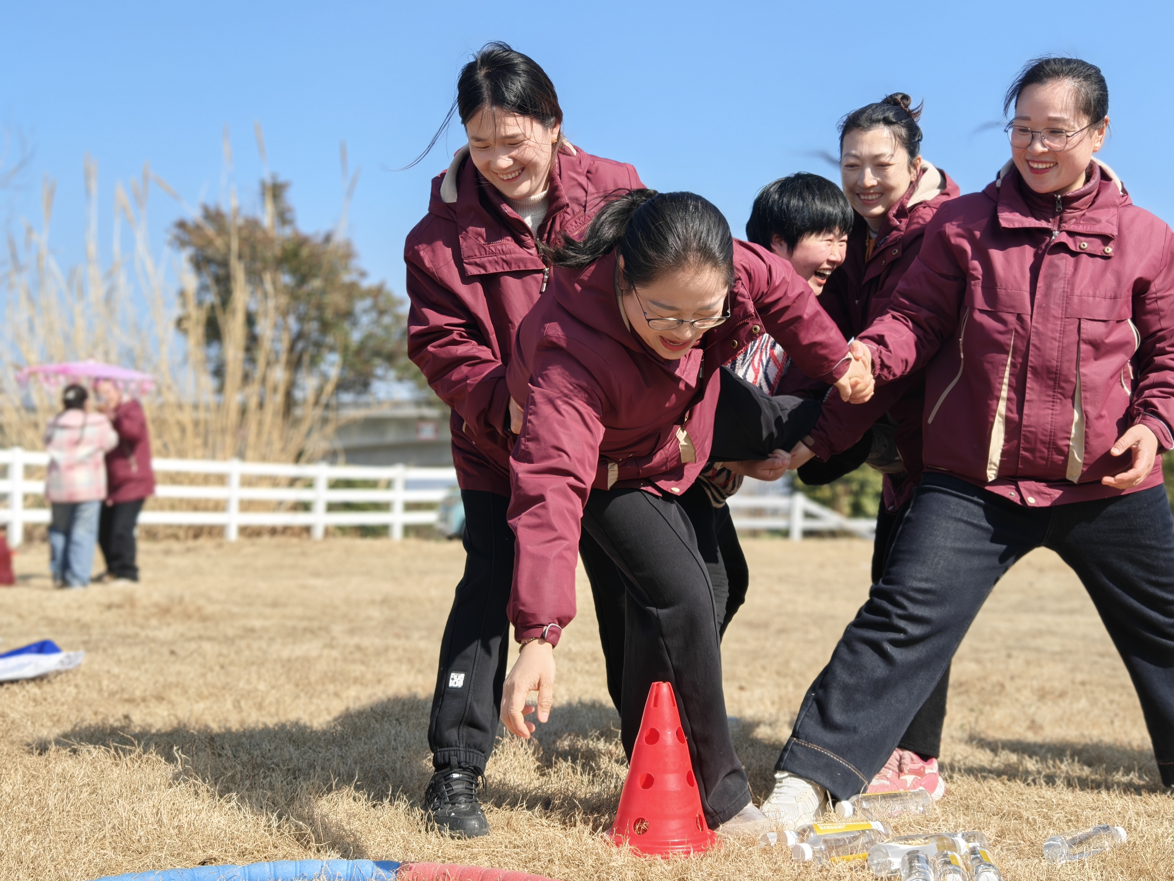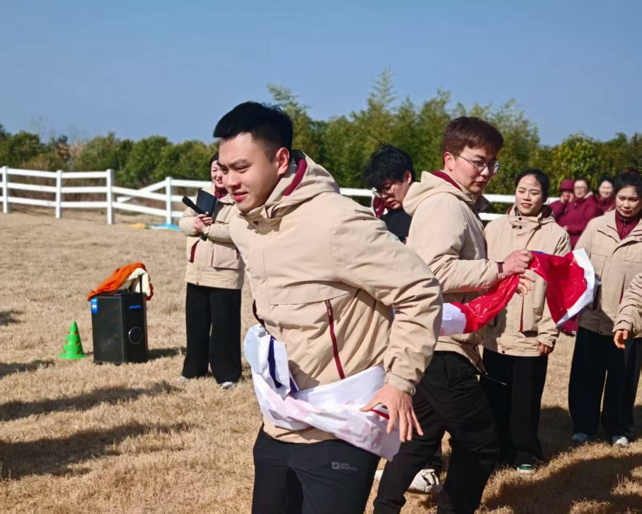 热身过后,精彩的游戏环节正式登场。“趣味拔河”“一圈到底”“寻龙去水”等项目轮番上演,大家分组协作、默契配合,为了团队荣誉全力以赴。赛场上,加油声、呐喊声、欢笑声此起彼伏,每个人都沉浸在游戏的乐趣中,不仅锻炼了身体,更增强了团队的凝聚力和向心力。