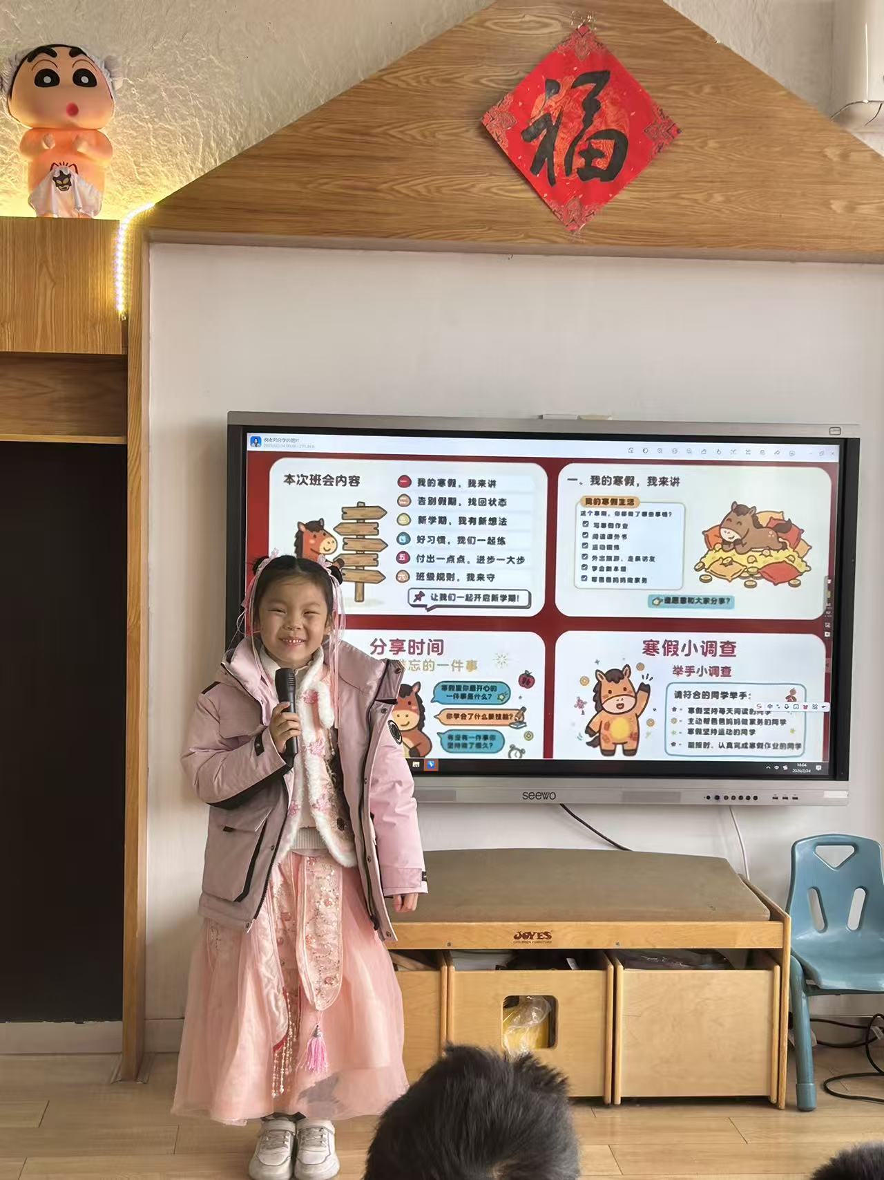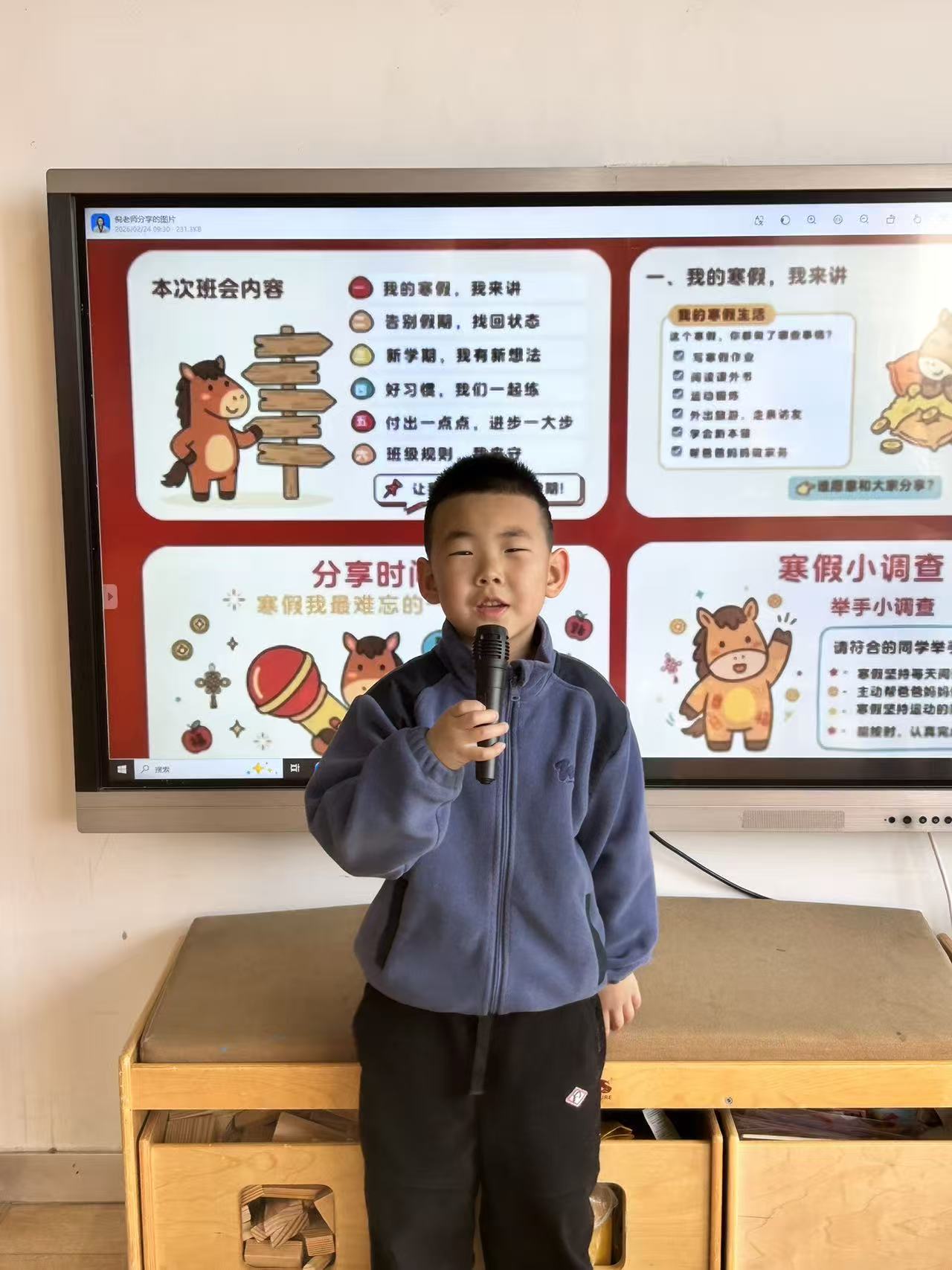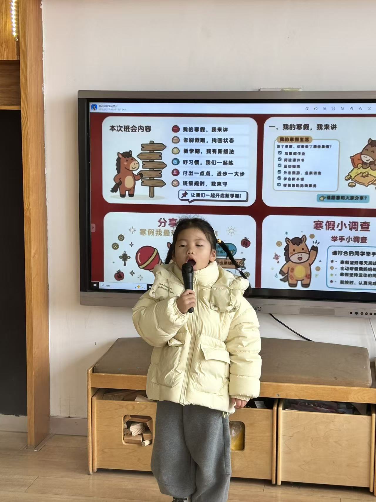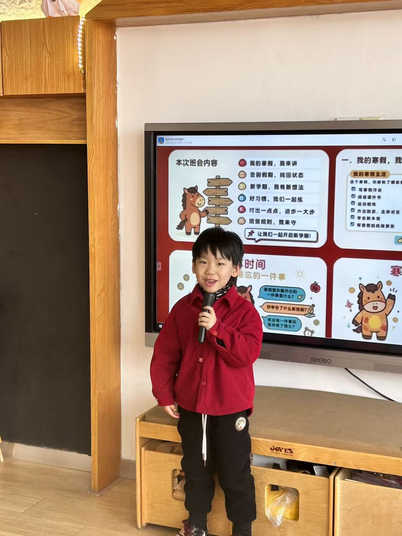 过了一个热热闹闹的马年春节,孩子们心里装满了说不完的故事。在开学第一天的课堂上,大班的哥哥姐姐们成了最闪亮的主角。