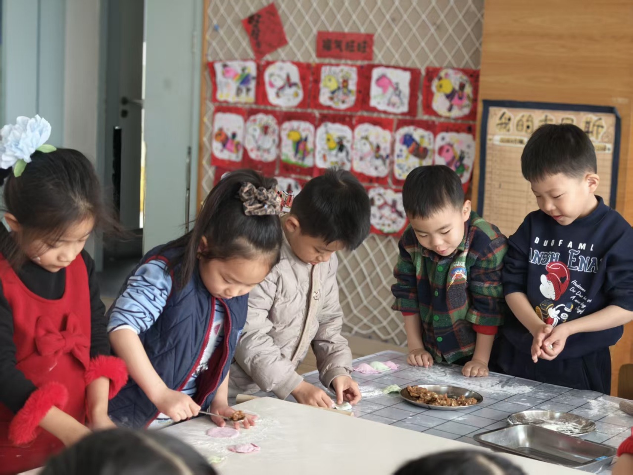 园内还开展了趣味包饺子活动,小手揉面、捏褶、造型,一个个小巧可爱的饺子新鲜出炉,热气腾腾里藏着团圆与甜蜜。